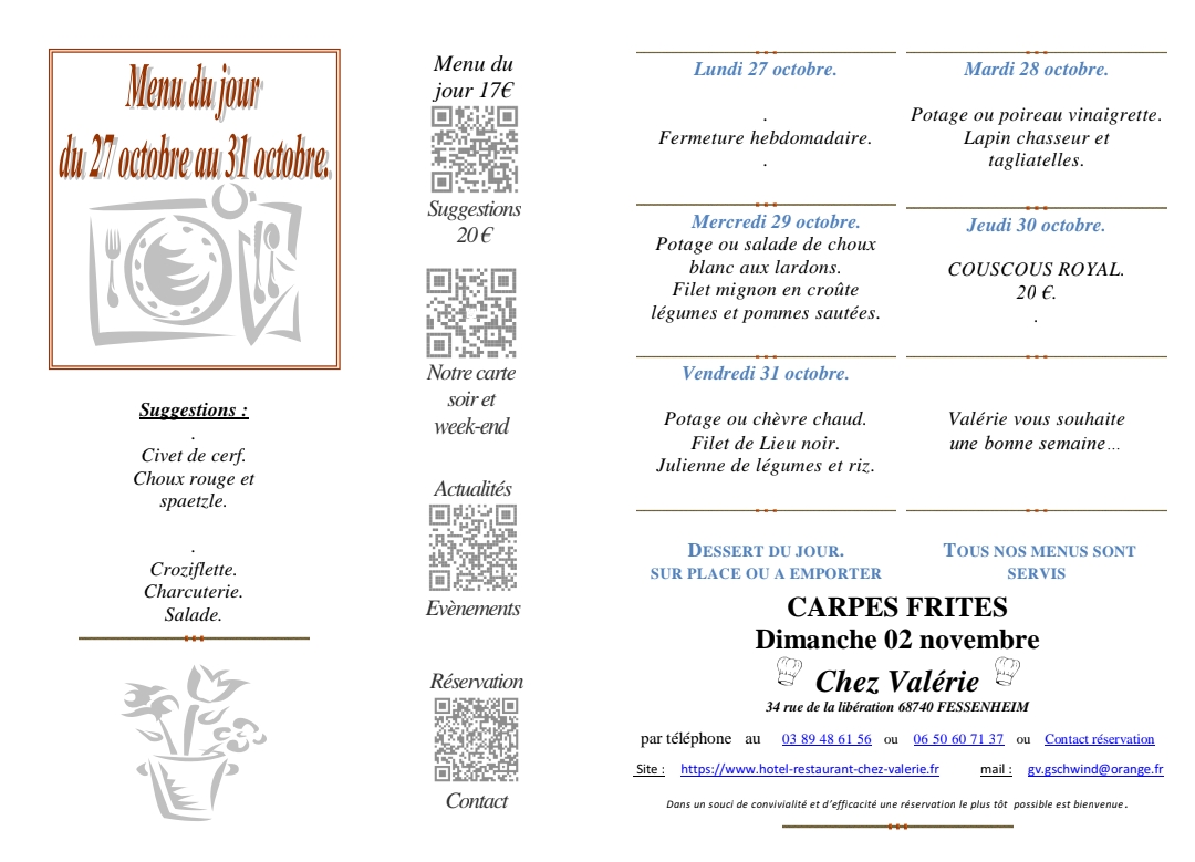Menu du jour…la semaine